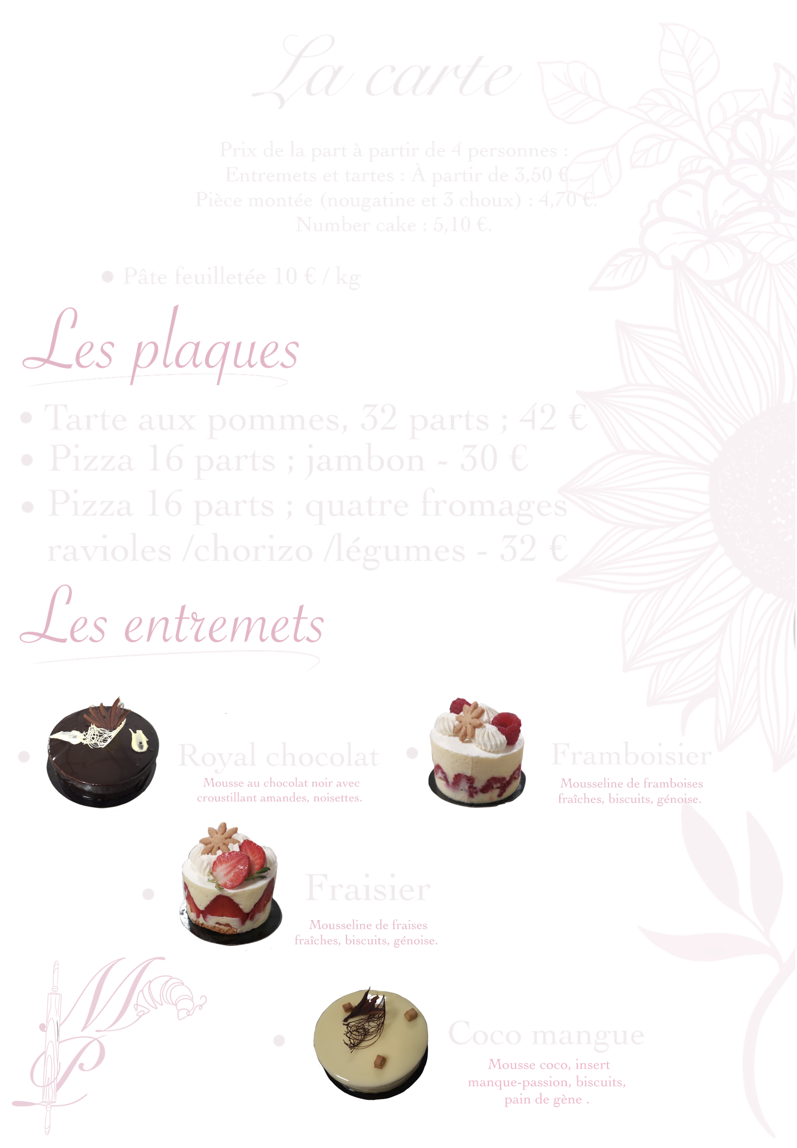 Pour éviter le gaspillage alimentaire, nous travaillons principalement sur commande, avec un délai minimum de 48 h.